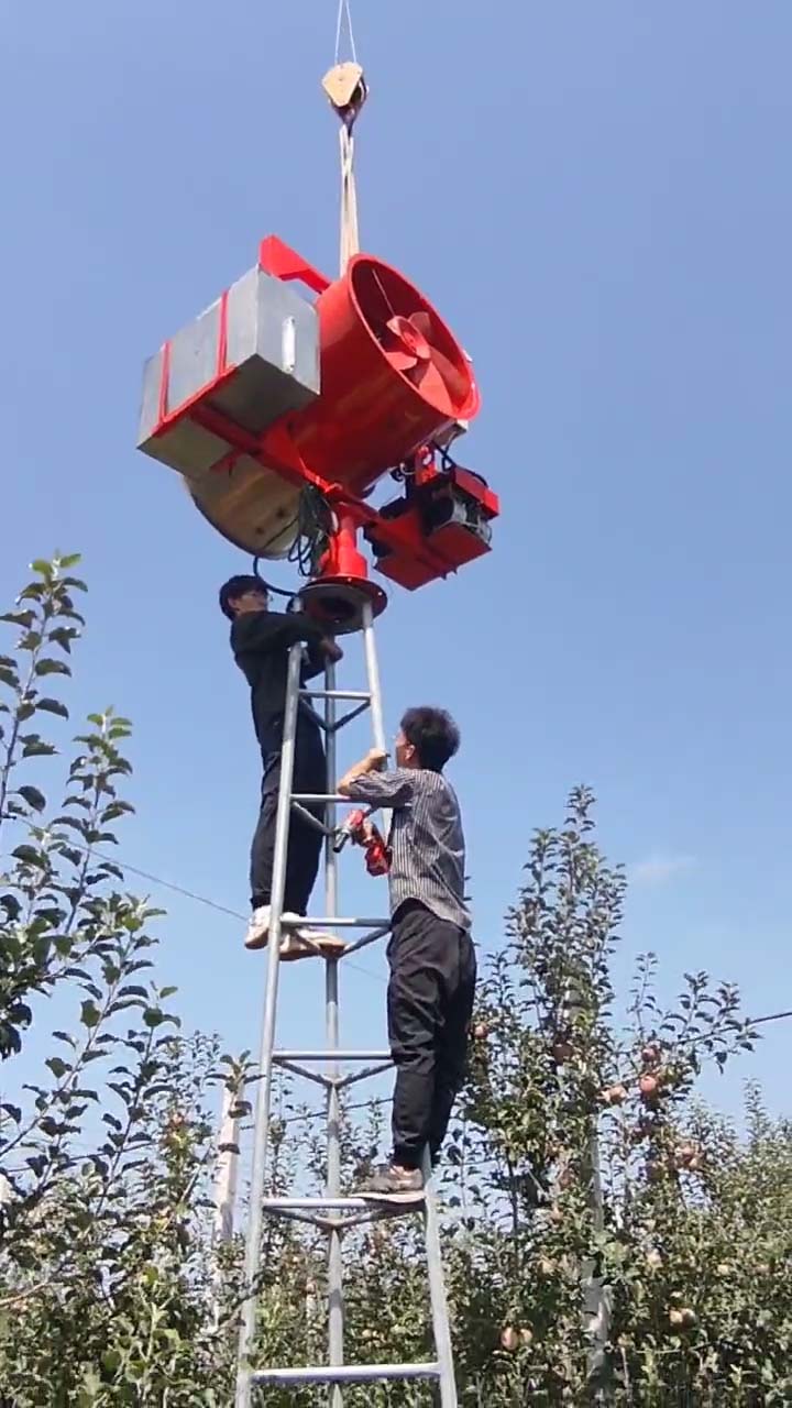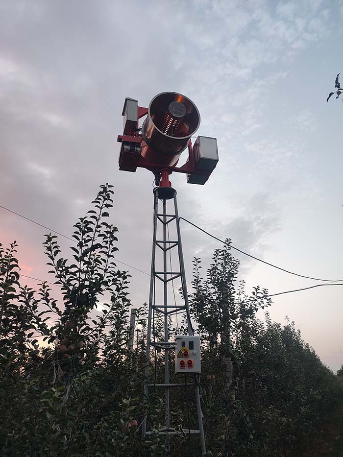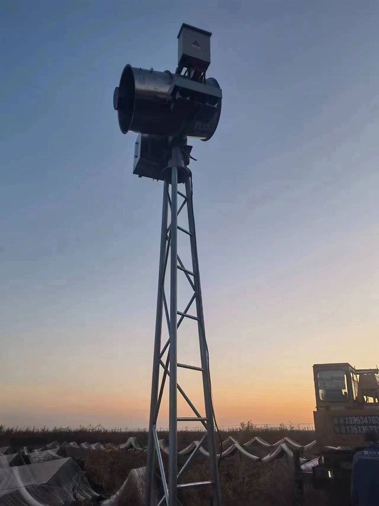 1.燃油高空款:防霜半徑≥50m;功率:10.5kw;安裝高度7米?!钤鰷胤绞剑耗鏈貙?燃油;水平旋轉(zhuǎn)角度:360度(旋轉(zhuǎn)速度可調(diào)節(jié));防霜機自動上下擺動,擺動角度和幅度均可自由調(diào)節(jié);不可有明火噴出防霜機出口;配有安全檢測裝置,當火熄滅后供油系統(tǒng)自動斷油;配有高空逆溫層測溫裝置和測地表溫度裝置;再有逆溫層時可以只開防霜機,當逆溫層消失時可開啟燃油裝置且可以調(diào)節(jié)大小火量。380V電源。