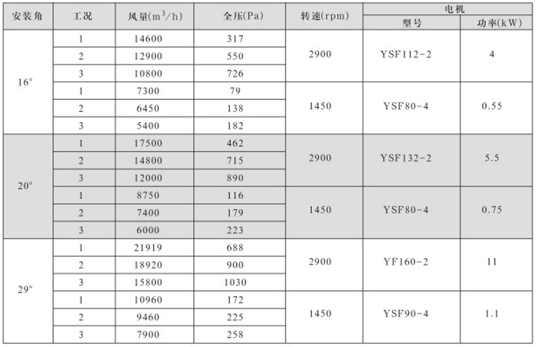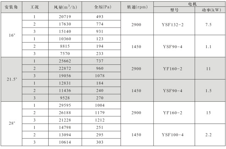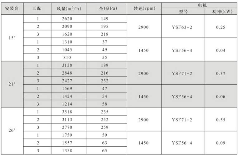 DTF(R)-3.15(6葉)系列地鐵、隧道軸流風(fēng)機性能表