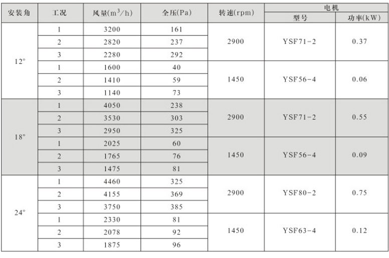 DTF(R)-5.6(9葉)系列地鐵、隧道軸流風(fēng)機性能表