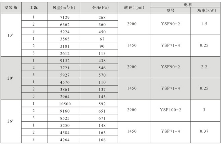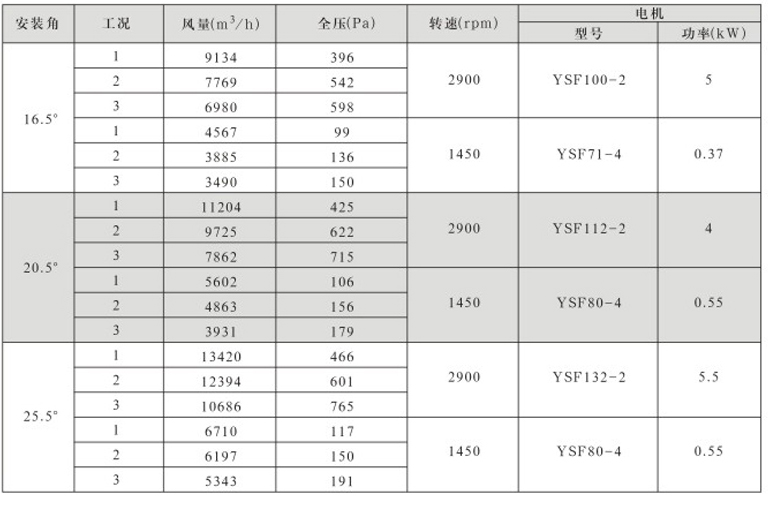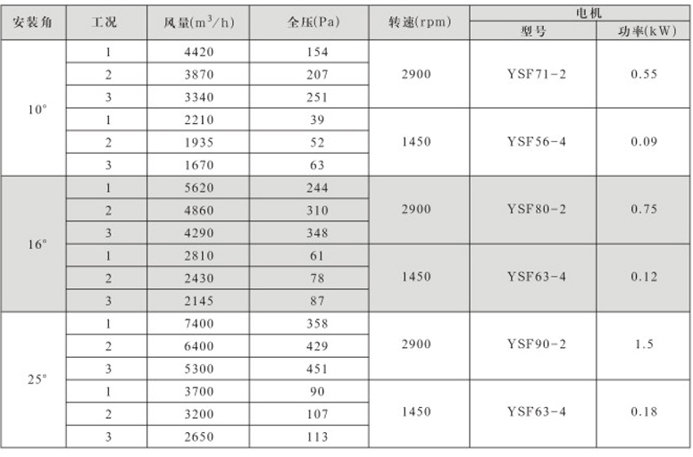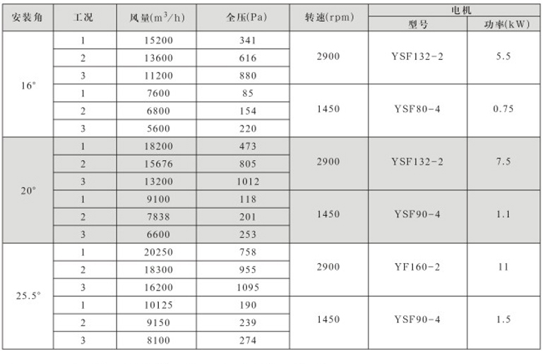 DTF(R)-4.5(6葉)系列地鐵、隧道軸流風(fēng)機性能表