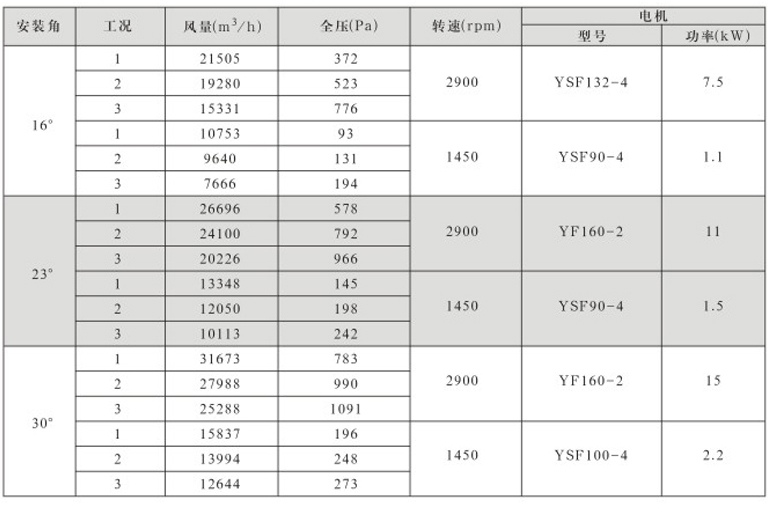 DTF(R)-6.3(9葉)系列地鐵、隧道軸流風(fēng)機性能表